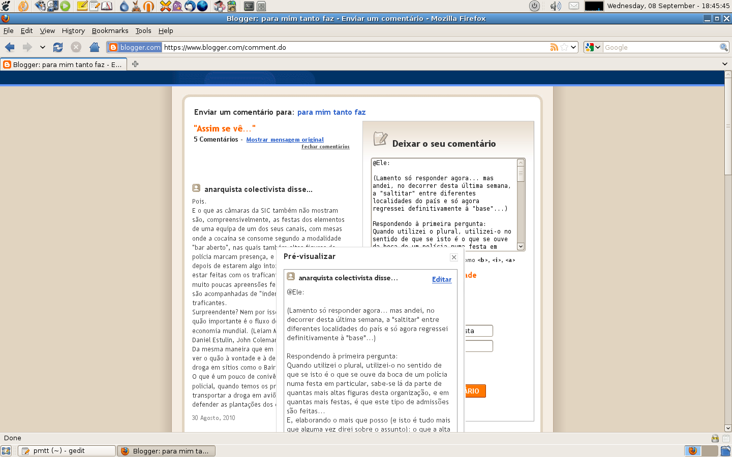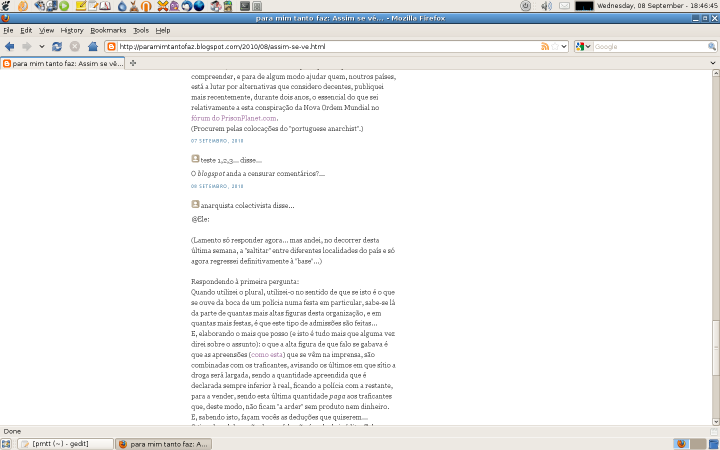 E, bem a propósito disto, deixo a seguir as fotografias de algo que me aconteceu, repetidamente - há dois anos, antes de criar este meu sítio na Internet - com um comentário, em particular, num dos blogues que, já na altura, costumava consultar (e, confirmadamente, não por culpa do autor da publicação em causa) para que tirem vocês as vossas próprias conclusões.